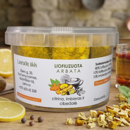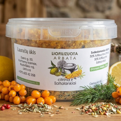 Liofilizuota arbata citrina ir braškės – tai 100 % natūralus ingredientų mišinys, pagamintas naudojant liofilizavimo (šaltyje džiovinimo) technologiją. Šio proceso metu išsaugoma didžioji dalis vertingų maistinių medžiagų. Arbata be pridėtinio cukraus, konservantų ar dirbtinių priedų.
